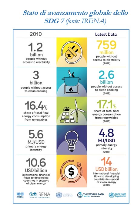 Il 2019 e la pandemia. Secondo le indicazioni di Italy4climate la pandemia ci riserva una prospettiva di sostanziale incertezza. Non possiamo anzitutto nascondere la situazione come si presentava a fine 2019: si chiude il decennio più caldo mai registrato in Italia, con 13,4 °C di temperatura superficiale media; tra il 2008 al 2019 cresce di 10 volte il numero di eventi estremi in Italia, fino a 1600; le emissioni! di gas serra non diminuiscono sensibilmente da sei anni, stazioniamo sopra i 420 MtCO2eq; l'efficienza energetica dell'economia da diversi anni non migliora più e permane intorno a 93 tep/M€; in sei anni in Italia le rinnovabili elettriche crescono meno che nel resto d'Europa (+3%) anche se erogate a prezzi inferiori, mediamente meno di 5 €cent/kWh. Cala a 20 TWh la produzione elettrica da carbone, così consentendo la discesa dell’impronta carbonica dell’energia elettrica a 289 gCO2/kWh, mentre ne viene confermato il phase-out entro il 2025; le emissioni dei trasporti, pur con meno auto diesel vendute, salgono in media a 119 gCO2/km. Gli effetti sensibili della pandemia ci stanno dicendo che solo nei mesi di marzo e aprile 2020 abbiamo ridotto le emissioni di oltre 20 MtCO2 rispetto all’anno precedente. Nella fase di piena operatività delle misure di restrizione, la riduzione delle emissioni è stata intorno al 35% che, al di là delle apparenze, è in realtà molto vicina a quello che dovrebbe essere il taglio da raggiungere in appena un decennio per centrare gli obiettivi di Parigi e non far precipitare la crisi climatica. Questo ci mostra in maniera molto chiara la dimensione dello sforzo che dovremmo fare nei prossimi anni e anche la distanza dall’obiettivo di contenimento del cambiamento climatico.