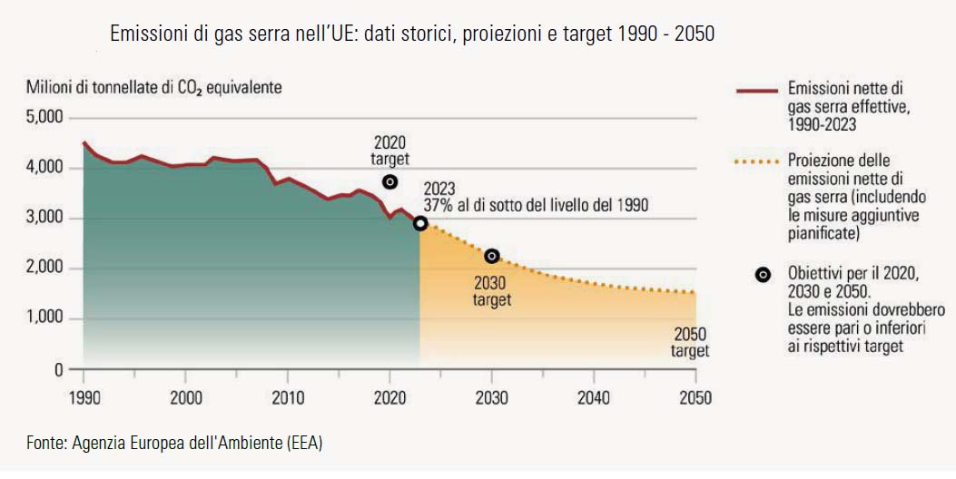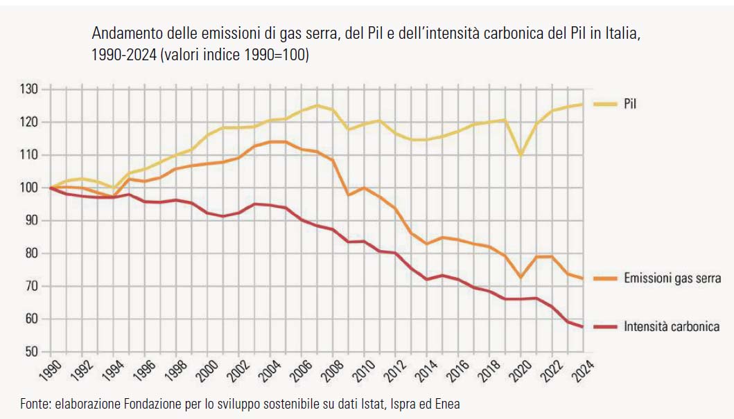 Quindi sarebbe almeno consigliabile un po' più di prudenza, diciamo, nel criticare così con tanta facilità il Green Deal europeo. Le emissioni di gas serra in Italia sono state ridotte complessivamente del 28 per cento dal 90 al 24. Per raggiungere l'obiettivo del 2030 intorno al 43, occorre tagliare un altro 15% nei rimanenti sei anni. Nel 23 c'è stato un taglio di ben 28 milioni tonnellate e con il ritmo del 23 saremmo stati in traiettoria. Purtroppo nel 24 il taglio è diminuito a 7 milioni di tonnellate. Ovviamente con il rallentamento del 2024 non siamo più in traiettoria e dobbiamo recuperare. Tenete conto che si dice che l'Italia è particolarmente esposta. Non è solo quello, è proprio un hotspot climatico nel Mediterraneo. L'aumento delle temperature in Italia corre il doppio della media mondiale. I dati sono quelli di Ispra sul 24. In Italia è stato l'anno più caldo di sempre con 1,33 °C rispetto al ventennio 91-2020. Due gradi e mezzo rispetto alla media degli anni 70. Il punto di riferimento è la temperatura pre-industriale. In Italia siamo ben al di sopra dei 3 °C rispetto al periodo pre-industriale. Nel 2024 sono stati registrati in Italia oltre 3.600 eventi climatici estremi. I consumi di energia in Italia per unità di ricchezza prodotta si sono ridotti. Siamo abbastanza efficienti, del 28%, meno della media europea che è stata del 35%. Le fonti rinnovabili termiche, trasporti, elettricità hanno coperto il 19,6% del consumo finale di fronte a un target del 39,4% del PNIEC al 2030. Le fonti termiche, il 22% del fabbisogno per riscaldamento e raffrescamento a fronte del 35,8%. Ma è nel trasporti dove siamo più indietro. In particolare per la scarsa disponibilità di biocarburanti e la bassa diffusione delle auto elettriche. Qui le rinnovabili hanno soddisfatto solo il 10,3% dei consumi di energia. L'obiettivo del PNIEC è il 34,2%. Siamo proprio molto lontani. Nel 24 la produzione di elettricità da rinnovabili ha superato i 130 miliardi di kWh, 49% della generazione di elettricità. Saremmo in traiettoria col target nostro del 70% al 2030. Purtroppo i dati del primo semestre del 2025 mostrano un rallentamento. Siamo scesi del 17% delle nuove installazioni di eolico e di fotovoltaico nel primo semestre del 2025. Perché? C'è una frenata dovuta al fatto che l'ecobonus 110% è finito ed anche, e questo però bisogna che con le regioni si discuta, il freno posto in alcune regioni comincia ad avere peso quantitativo sul rispetto dei nostri target sullo sviluppo delle rinnovabili. Intanto si riapre, vi la proposta di ritorno al nucleare in Italia. Sono assolutamente d'accordo che serve un confronto, però maggiore e migliore e soprattutto documentato, non ideologico, sui costi, la fattibilità e le alternative a minore impatto. I dati pubblicati dal World Energy Outlook IEA l'anno scorso, quello nuovo lo stiamo ancora aspettando, dicono che i costi livellati di generazione dell'elettricità delle centrali nucleari sono tre volte superiori in Europa di quelli del solare e dell'eolico. In Italia, che non dispone né di miniere di uranio né di impianti di arricchimento, produzione di combustibile nucleare, sia la dipendenza, sia i costi dell'importazione sarebbero maggiori. Non c'è alcuna prova che dimostri che l'elettricità generata con gli SMR, questi Small Modular, costi di meno. Il ritorno al nucleare non è supportato in Italia da una valutazione di fattibilità. Per produrre il 10% di elettricità si dovrebbero localizzare 20 reattori da 300 megawatt in Italia, dove in 14 anni non è stato localizzato un deposito di rifiuti e dove nessuna regione e nessuna città, indipendentemente dal colore politico, si dichiara disponibile ad ospitare un reattore nucleare. La discontinuità giornaliera e settimanale del solare e dell'eolico è risolta con batterie, pompaggi, sistemi di gestione intelligente delle reti e della domanda. La discontinuità stagionale è affrontabile con l'integrazione delle diverse stagionalità del solare e dell'eolico, con fonti rinnovabili non discontinue, idroelettrico, geotermia e biomassa, in futuro con accumuli basati sull'idrogeno verde e sui suoi derivati, che si potranno anche in parte importare in sostituzione dell'import di petrolio e di gas. Quando arriveremo all'80-90% di elettricità fornita dal rinnovabile, resterà ovviamente un 10-20% di elettricità fornita da centrali a gas esistenti, che svolgeranno un ruolo di peackers, che si possono accendere e spegnere all'occorrenza, a differenza delle centrali nucleari, e che si potranno, nel caso di ritardi delle rinnovabili, decarbonizzare con la cattura e il sequestro e il riutilizzo della CO2, in attesa degli esiti della ricerca sulla fattibilità, i costi e i minori impatti della fusione. La transizione verso una maggiore circolarità dell'economia è particolarmente importante per l'Italia, paese manifatturiero che utilizza grandi quantità di materiali importati, 46,6%. L'Italia ha migliori performance di circolarità fra i grandi paesi europei: la nostra produttività delle risorse è cresciuta del 32%, il tasso di utilizzo circolare di materiali è intorno al 20,8%, il doppio circa della media europea, il tasso di riciclo del totale dei rifiuti è buono, 86% totale e 75% degli imballaggi. Attenzione però al mercato delle materie prima e seconde, in particolare della plastica riciclata che è precipitata in una forte crisi che se non risolta potrebbe produrre ricadute negative addirittura sugli sbocchi delle raccolte differenziate, tema che mi pare ancora trascurato. In Italia, benché nel 24 abbiamo raggiunto un record europeo di 701 auto ogni 1000 abitanti, pensate che la media europea è 571, i primi in Europa per numero di auto. La produzione di auto però è scesa ai minimi storici con 310.000 unità e abbiamo ormai una quota del 2,1% della produzione di auto europee. Ovviamente qui ci sono fallimenti di politiche industriali piuttosto pesanti alle spalle. In Italia, 